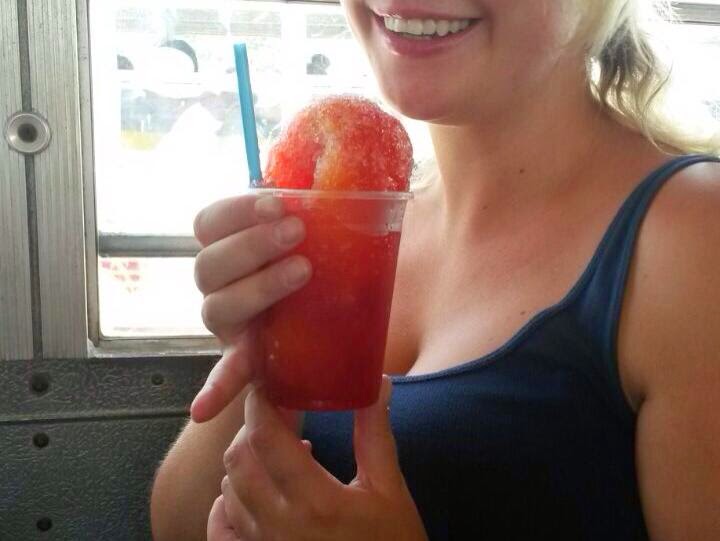 Op de foto's zie je onze bus, en een lekker schaafijsje wat je in de bus kan kopen.